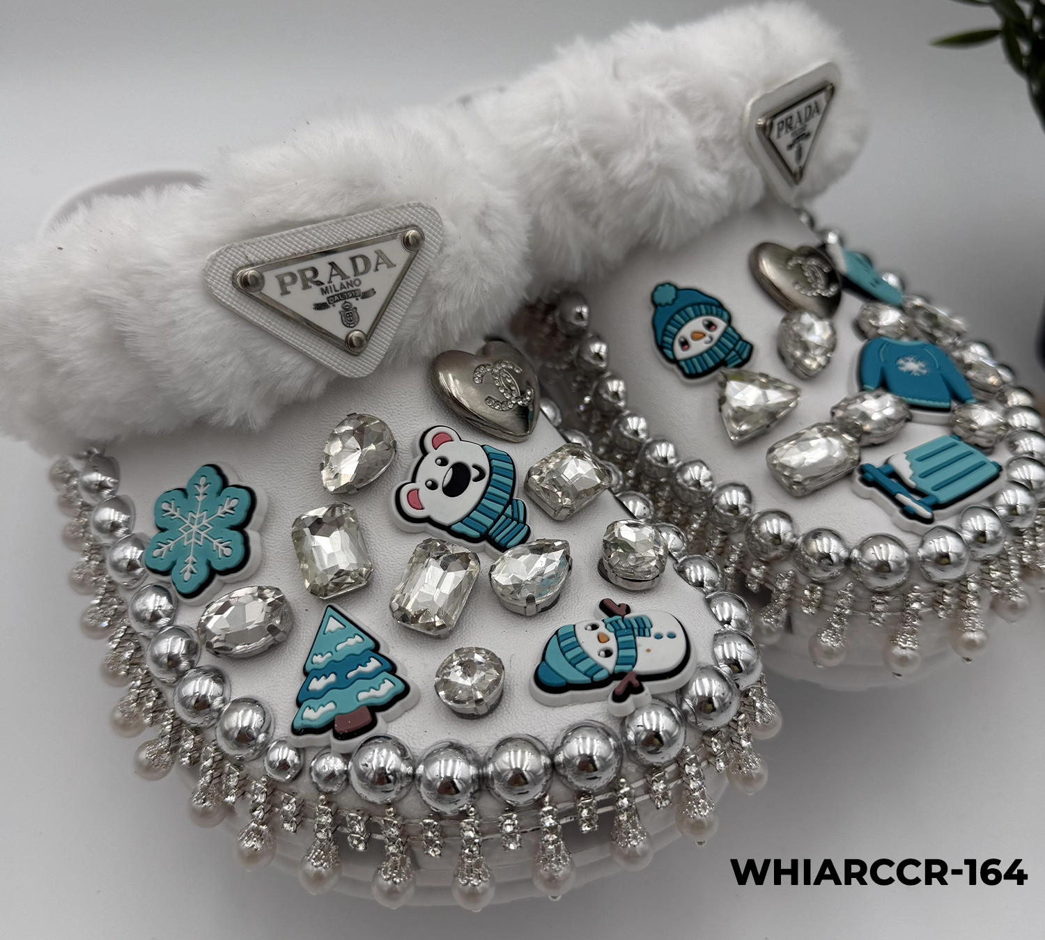 “Embrace the sparkle and comfort! Get your Arctic Aura Luxe Faux-Fur Clogs today and walk in unique DivaRn style. Shop now!”